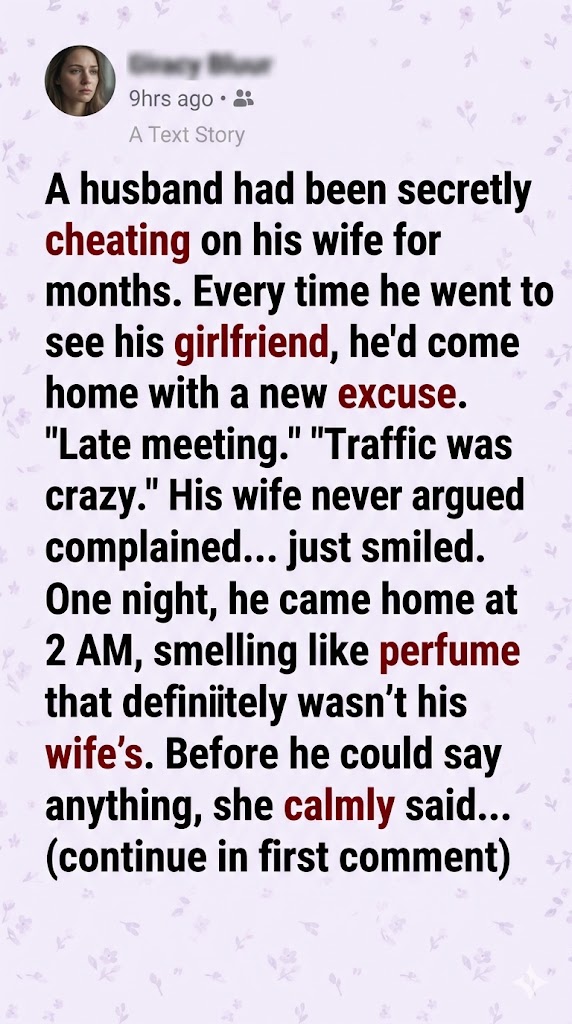 One night, he came home at 2 AM, smelling like perfume that definitely wasn’t his wife’s.