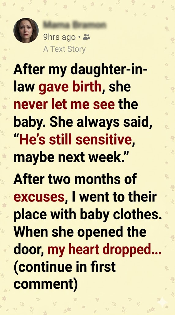 After my daughter-in-law gave birth, she never let me see the baby. At first, I didn’t think much of it. New mothers get overwhelmed, and I wanted to respect her space. But every time I asked to visit, there was always a reason.