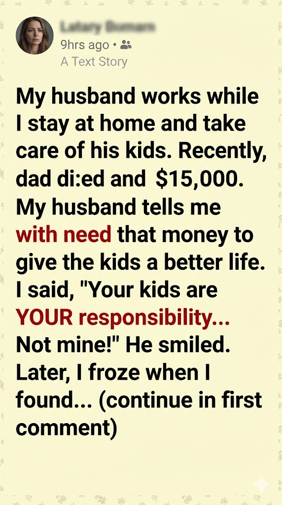 Becky inherited $15,000 from her father, but her husband insisted the money should go toward improving his kids’ lives.