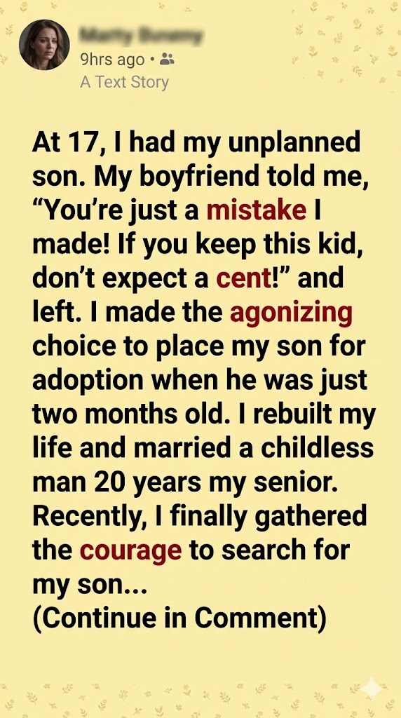 My son was born small, perfect, and impossibly real. I still remember his tiny fingers wrapping around mine, and how I cried because I already knew I couldn’t keep him. At just two months old, I signed the adoption papers, telling myself it was love—that I was giving him a better life than I could ever provide.