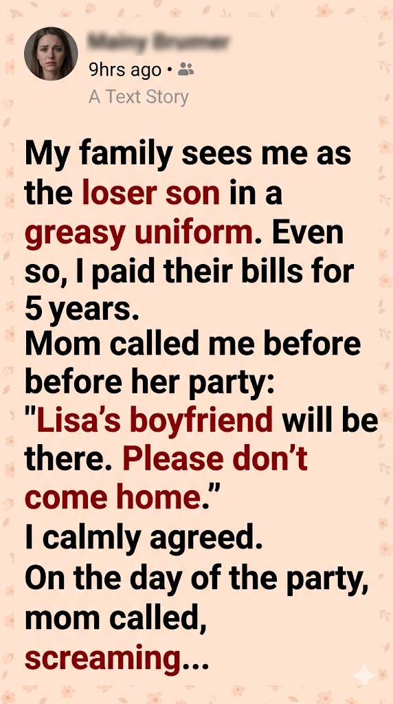 “Please don’t come home tonight.”Daniel paused, then answered calmly, “Alright, Mom. I understand.”On the day of the party, he stayed away just like she asked. But later that evening, his phone rang.