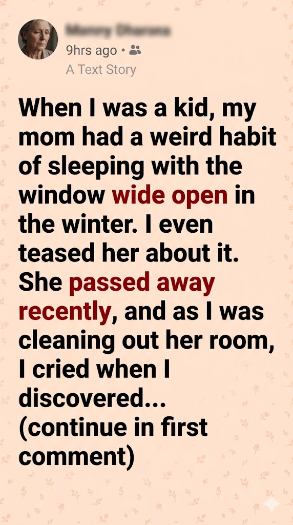 When I was a child, my mom had a habit that always puzzled me—she slept with the window wide open, even in the coldest winters. I used to tease her about it, bundling myself in blankets while joking that she must have been part polar bear. She would just smile gently and say, “Fresh air keeps the soul alive.” At the time, it felt like one of those strange, harmless quirks I would never fully understand.