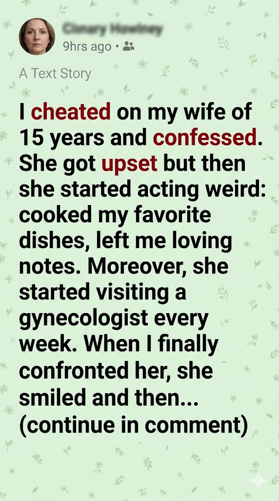 She cooked my favorite meals, left kind notes, and smiled as if nothing had changed. I couldn’t understand it, and her calmness made me uneasy. Weeks went by, and I noticed she often said she had appointments with her gynecologist. My guilt made me suspicious, but I told myself I had no right to question her after what I had done.