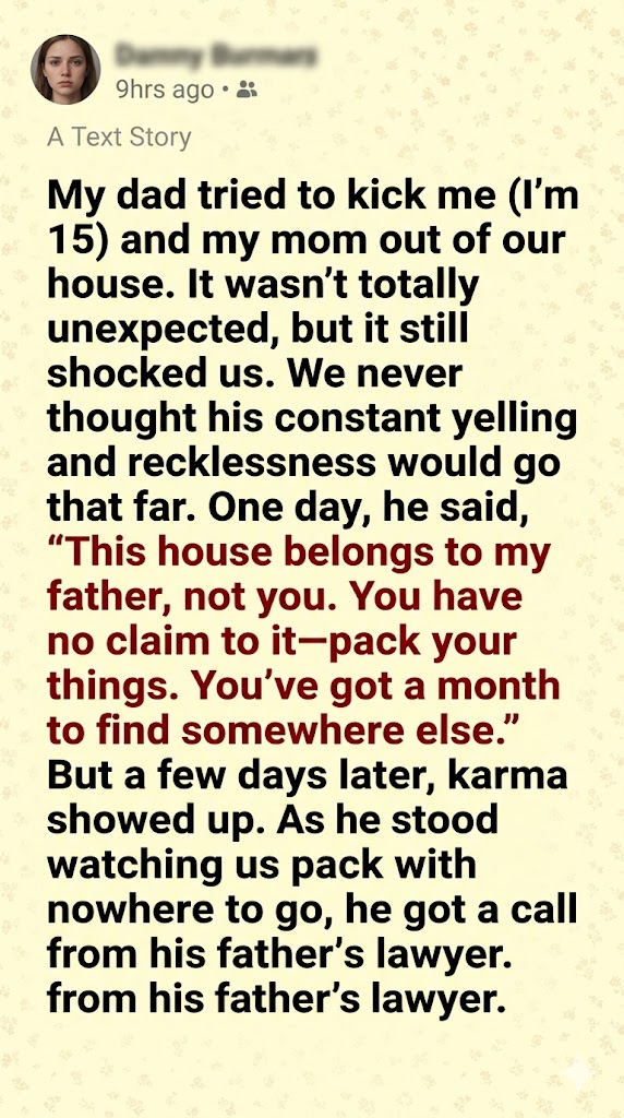 When my dad told us to pack our things and leave, I thought he was bluffing. He wasn’t. But just when it felt like we’d lost everything, life flipped the script in the most unexpected way.