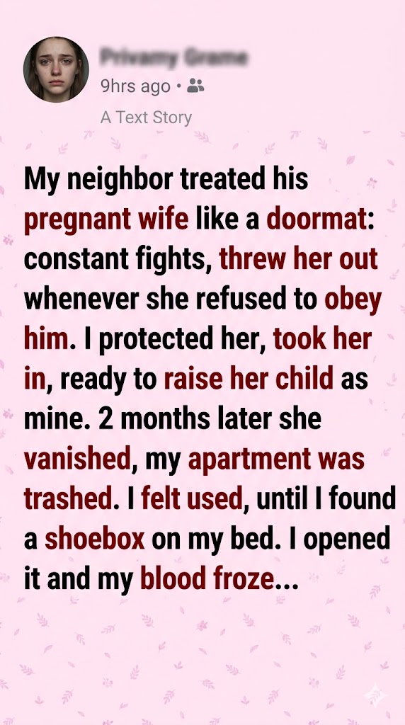 Soon after, the hospital called. She had gone into early labor and rushed out during contractions—that’s why my apartment looked destroyed. The baby was premature but healthy. She had moved to another town to stay with relatives, far from her husband, somewhere safe at last. She named her son after me.