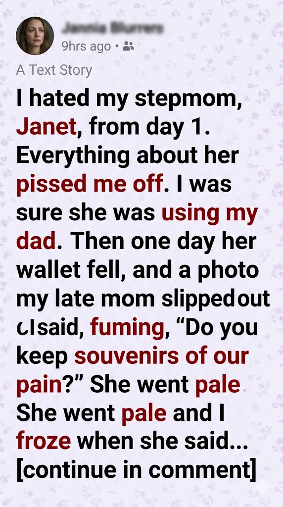 I hated my stepmom, Janet, from day one. Everything about her bothered me. I was sure she was only with my dad for his money.
