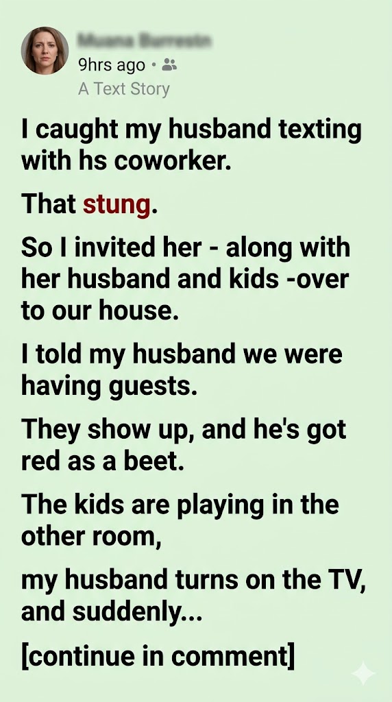 I caught my husband texting with his coworker. That sting lingered, and instead of letting it fester, I decided to confront the tension in an unusual way—I invited her, along with her husband and kids, over to our house. When I told my husband we were having guests, his face turned red as a beet.