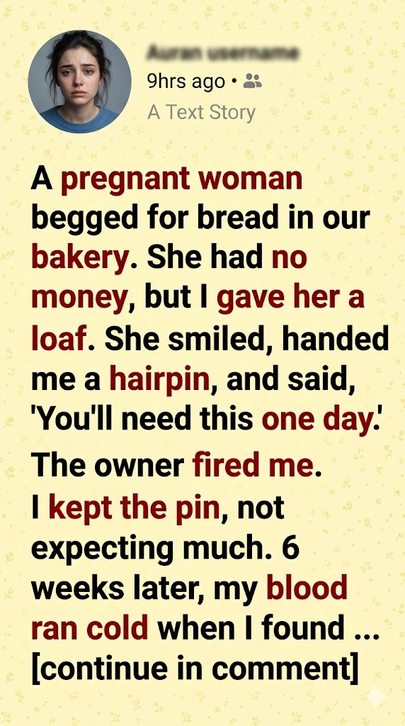 The day she walked into the bakery, rain was still clinging to her coat like regret. Her clothes were worn, her shoes unevenly tied, and her belly—round and unmistakably expectant—spoke of a life she was carrying even as her own seemed to be crumbling.
