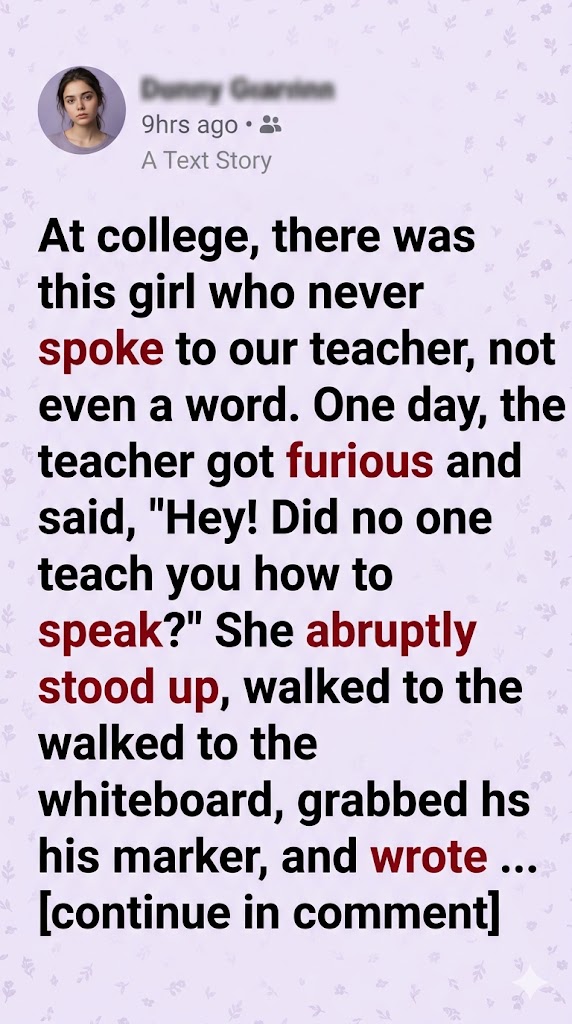 At first, most of us assumed she was shy — painfully shy. A few even said she was “weird.” But in the comfortable self-absorption of college youth, none of us ever wondered much further than that. We just accepted her silence as part of the classroom background — like the ticking clock or the hum of the old fluorescent lights.