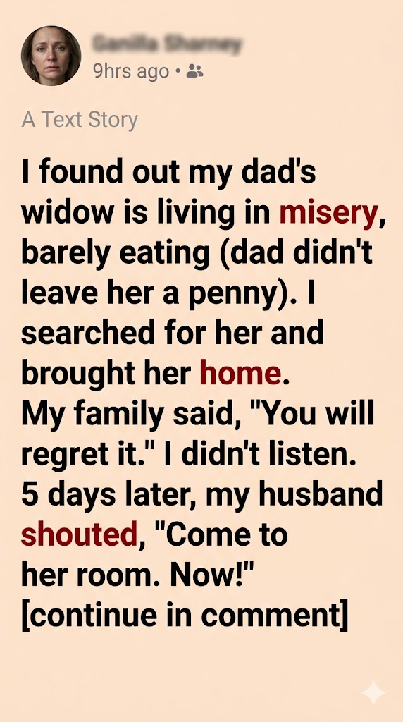 When I found out my dad’s widow was living alone in near-starvation, something inside me twisted. It had been three years since my father passed, and after the reading of the will, everyone assumed she’d be taken care of.