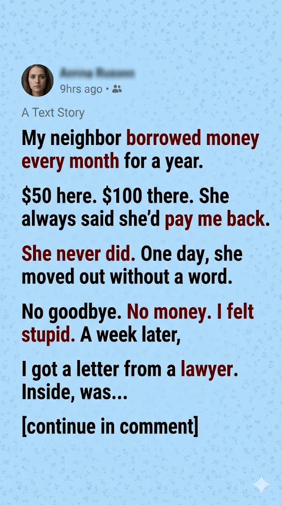 My neighbor borrowed money every month for a year. $50 here. $100 there. She always said she’d pay me back. She never did. I told myself it was temporary, that she was going through something, but eventually it just felt like I was being taken advantage of.
