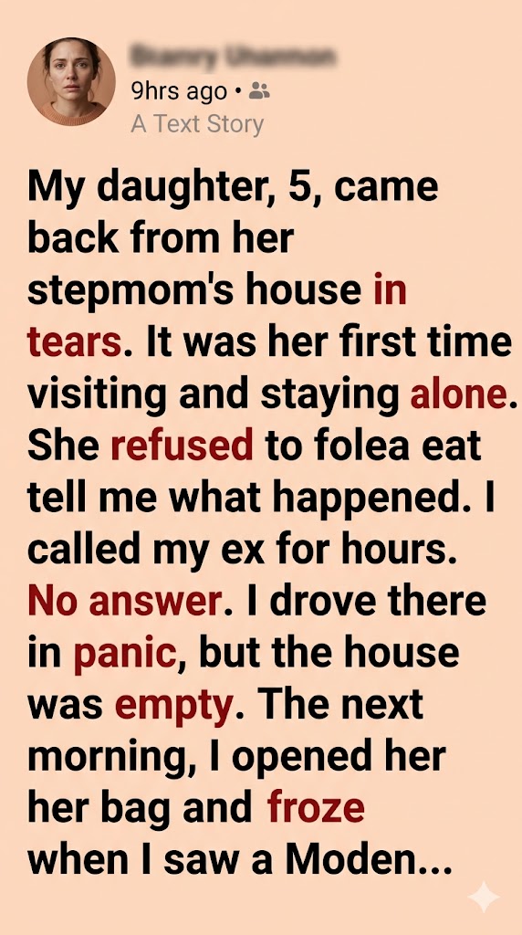 The moment I opened the door, I knew something was wrong. She didn’t run into my arms like she always did. She didn’t chatter about what she ate or what games she played. She just stood there, clutching her little backpack, her eyes red and swollen.