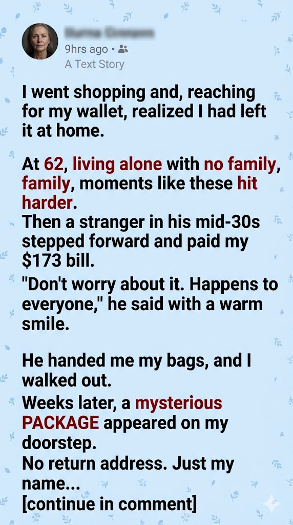 When 62-year-old Will forgets his wallet at the grocery store, he braces for humiliation — until a well-dressed stranger pays his $173 bill without hesitation. Weeks later, a mysterious package arrives on Will’s doorstep, and its contents reveal a shocking truth he never saw coming…
