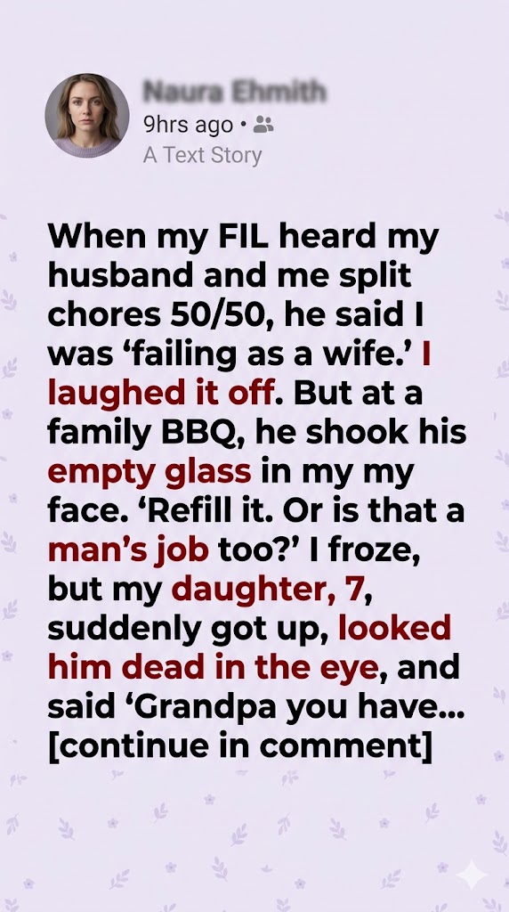 The comment from her father-in-law initially felt dismissive and outdated. When he joked that sharing household responsibilities meant she was “failing as a wife,” she chose not to engage, staying calm and continuing to live by her belief in partnership at home.