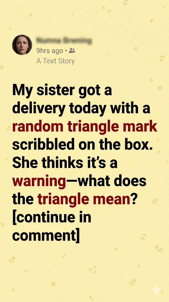 When my sister received a delivery with a hand-drawn triangle scribbled across the top of the box, she froze. It wasn’t large, it wasn’t fancy, and it wasn’t even neatly drawn. Just a black triangle, slightly uneven, ink bleeding lightly into the cardboard. But to her, it felt like a warning—an intentional mark left by someone who knew something she didn’t.