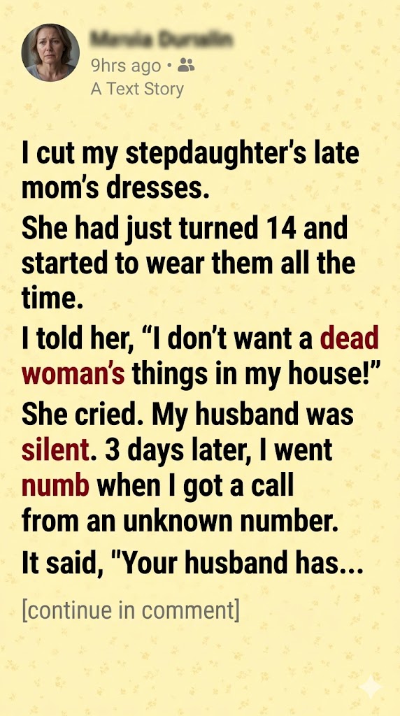 I cut up my stepdaughter’s dead mother’s dresses… and the next day my husband packed my suitcase