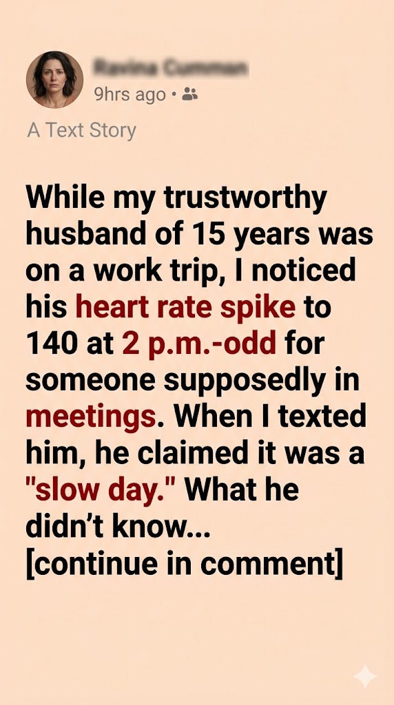 While my trustworthy husband of 15 years was on a work trip, I noticed his heart rate spike to 140 at 2 p.m.—odd for someone supposedly in meetings. At first, I laughed it off. Then I checked again. And again.