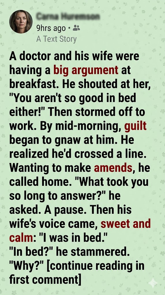 A doctor and his wife were having a big argument at breakfast. He shouted at her,