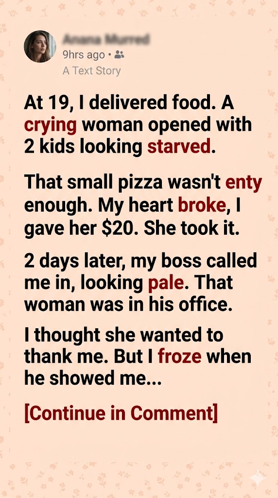 At nineteen, life felt like a constant cycle of motion—long hours, short breaks, and the steady rhythm of knocking on doors that rarely opened to anything memorable. I worked as a delivery driver, navigating streets I knew by heart, carrying warm meals to people whose lives I would never truly know. Most nights blurred together. A quick exchange, a polite smile, a tip if I was lucky, and then back to the car again. It wasn’t glamorous, but it was honest work, and I took quiet pride in doing it well. Still, I never expected that one ordinary delivery would stay with me long after the shift ended—long after I thought I had forgotten it.