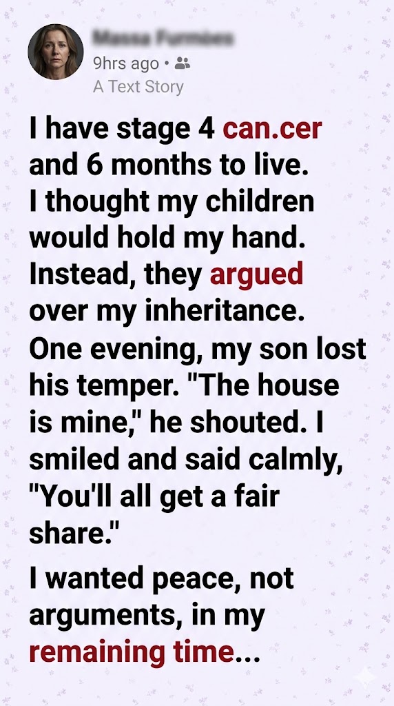 I didn’t want arguments. I didn’t want raised voices in the time I had left. I wanted quiet mornings. Gentle evenings. Dignity.