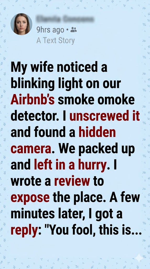 My wife spotted a blinking light in the smoke detector of our Airbnb. When I opened it, my hands went cold — a tiny hidden camera stared back at us.