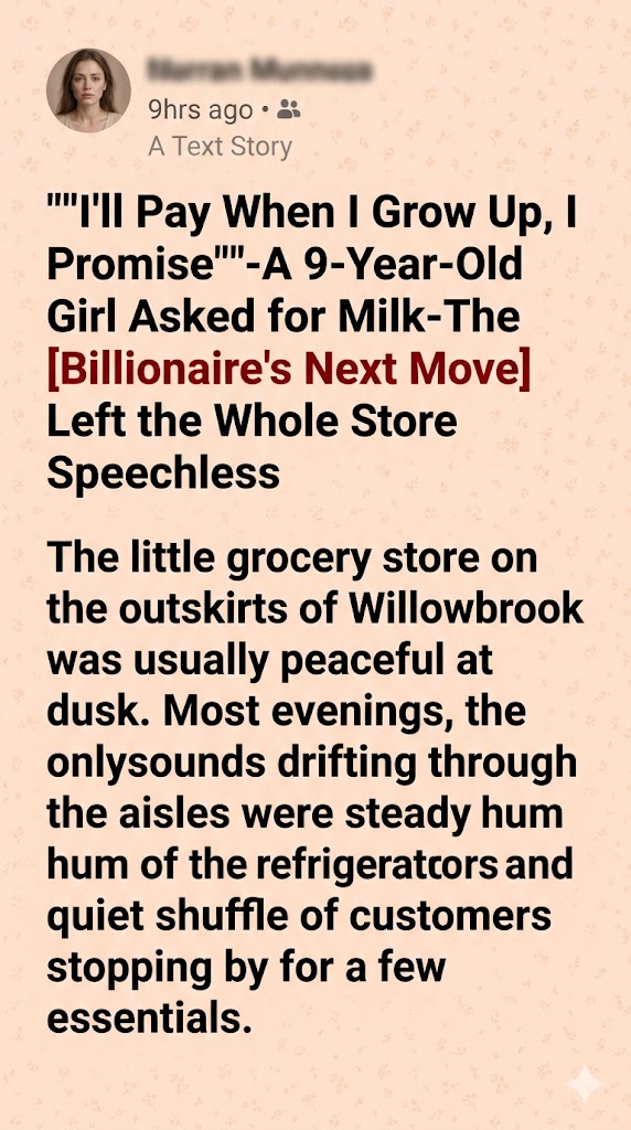 The small grocery store on the outskirts of Willowbrook was usually quiet in the early evening. Most days, the air carried nothing more than the soft hum of refrigerators and the faint shuffle of customers drifting in and out. But today, the silence felt different. It was heavier. Tighter. As if the entire room were holding its breath.