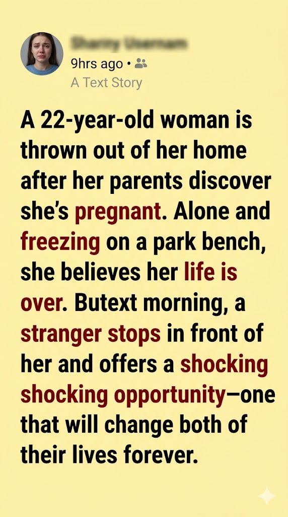 She walked for hours with no direction, tears drying on her cheeks in the wind. She tried calling a couple of friends, but the excuses came fast and clumsy. No one wanted trouble. No one had space. The city that had always felt familiar suddenly became a hostile maze of shadows and strange noises. Exhaustion finally defeated her in that square. “Everything will be okay, my love,” she whispered to her belly, stroking the tight fabric of her sweater. “Mum will find a way. I don’t know how, but I will.” But doubt gnawed at her. How? She had no money, no roof, and soon she would have a baby in her arms. Fear was paralyzing—an invisible monster hissing that maybe her parents were right, maybe she was a mistake, maybe she deserved nothing good. She closed her eyes, trying to sleep, but every branch creak, every distant footstep made her jolt awake. Being pregnant on the street felt like a physical sensation—a weight at the base of her skull that kept her on high alert.
