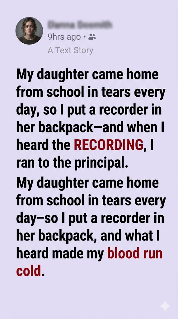 For weeks, my daughter returned from school with dim eyes and silent tears, and I couldn’t understand why. Trusting my instincts, I placed a recorder in her backpack—and what I heard was every parent’s nightmare.