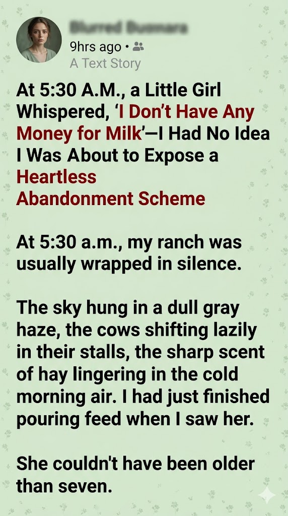 “I’m sorry, Mister…” she whispered, her voice barely audible over the rustle of hay. “I don’t have any money for milk.”