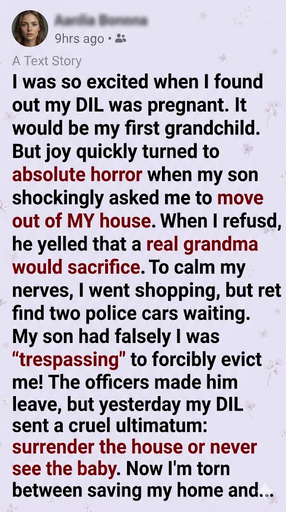 But yesterday my DIL sent me a message and said that I could either give them the house or they wouldn’t let me see my grandchild.