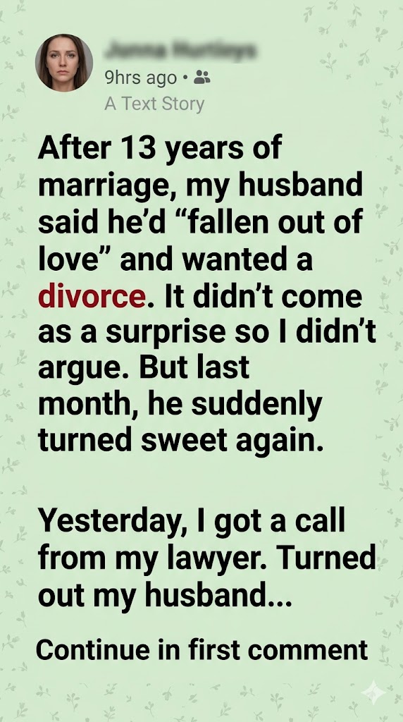 Then, suddenly, he became kind again—making breakfast, planning movie nights, acting like the old us. I let myself hope… until my lawyer called.