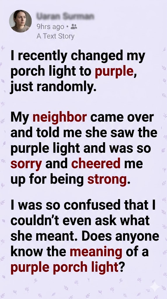 If you’ve ever taken an evening walk through a quiet neighborhood or driven slowly past rows of homes at dusk, you may have noticed something that feels both subtle and striking at the same time—a porch glowing softly in purple. It’s not a color most people expect to see outside a home, especially when compared to the usual warm whites or pale yellows that dominate exterior lighting. Yet purple stands apart in a way that doesn’t feel overwhelming or harsh. Instead, it creates a sense of calm curiosity, almost like a quiet signal that carries meaning beyond decoration. Many people pause when they see it, even if only for a second, sensing that the color choice is intentional. Over time, these lights have become more common, appearing in neighborhoods across cities, suburbs, and even rural areas. What once may have seemed like a seasonal or stylistic decision has evolved into something more profound. Behind that gentle glow is often a message rooted in empathy, awareness, and a desire to communicate support without words. It is a silent expression that doesn’t demand attention but still manages to capture it, encouraging those who notice it to look a little deeper and ask themselves what it might represent.