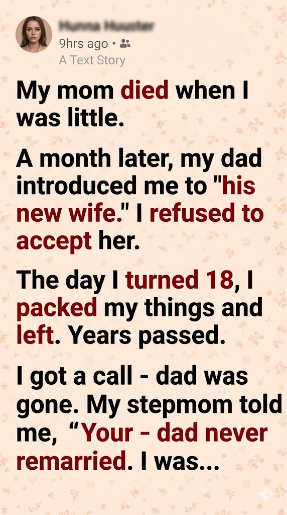 “Your dad never remarried,” she said softly. “We weren’t legally married. He asked me to move in so you wouldn’t grow up without someone caring for you.”