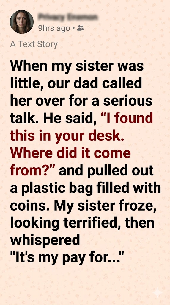 When my sister was little, our dad called her over for a serious talk. “I found this on your desk,” he said, holding a small bag full of coins. “Where did it come from?”