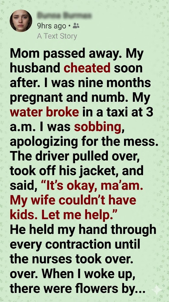 Then, in the middle of the night, my water broke. Panic took over as I climbed into a taxi, unable to trust myself to drive. But the driver didn’t just take me to the hospital—he became my anchor. He held my hand, guided me through contractions, and stayed calm when I felt like I was falling apart.