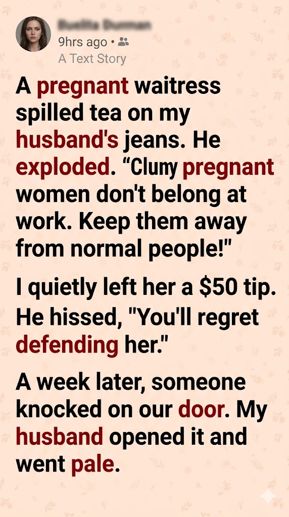 The tea wasn’t even hot, yet it splashed across my husband’s expensive jeans and the young waitress’s face, leaving a stark reminder of her mistake.