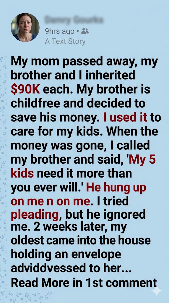 When Mom passed, everything felt like it was moving underwater—slow, heavy, unreal. Then came the will, the lawyer’s office, the quiet reading of numbers that somehow reduced a lifetime of love into neat figures.