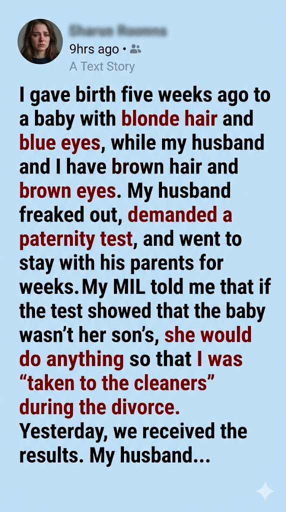 The day my daughter was born should have been pure joy, but it quickly became complicated. After nearly 20 hours of labor, I held our newborn and felt complete—until I looked at my husband, Marcus, and saw uncertainty instead of awe. Because our baby had light hair and blue eyes while Marcus and I both have darker features, he immediately asked if she was really his and demanded a paternity test. To me, the request felt like a betrayal at the worst possible moment.