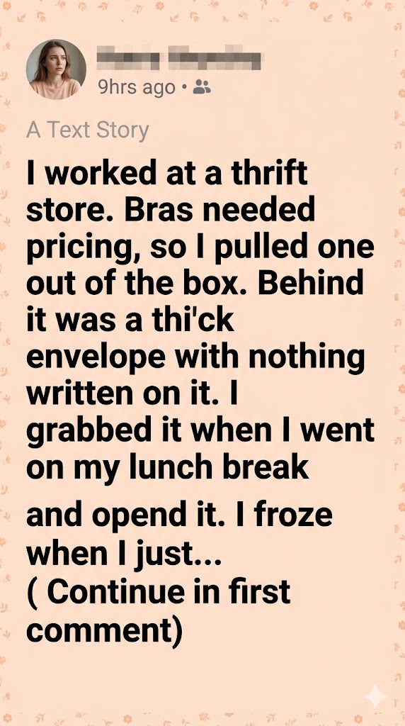 I worked at a thrift store. Bras needed pricing, so I pulled one out of the box. Behind it was a thick envelope with nothing written on it.