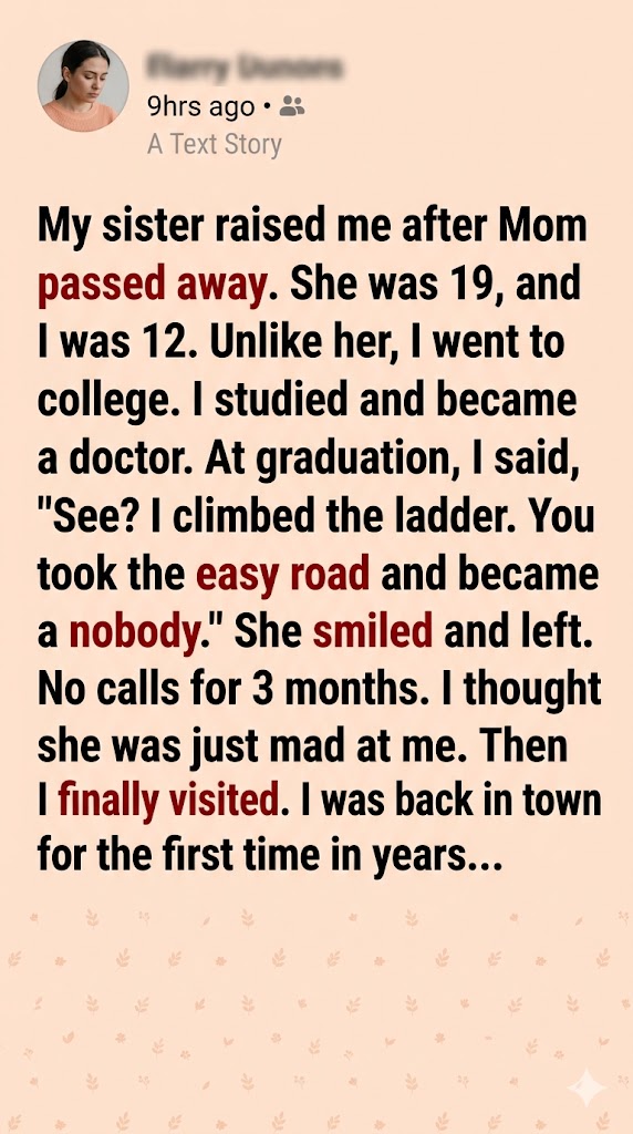When I was twelve, our mother died. I was lost in grief, but my nineteen-year-old sister became my anchor. She abandoned her own dreams, worked multiple jobs, and transformed a tiny apartment into a home where I felt safe and cared for. She stretched every dollar, turned exhaustion into strength, and carried both our grief and our future on her shoulders.