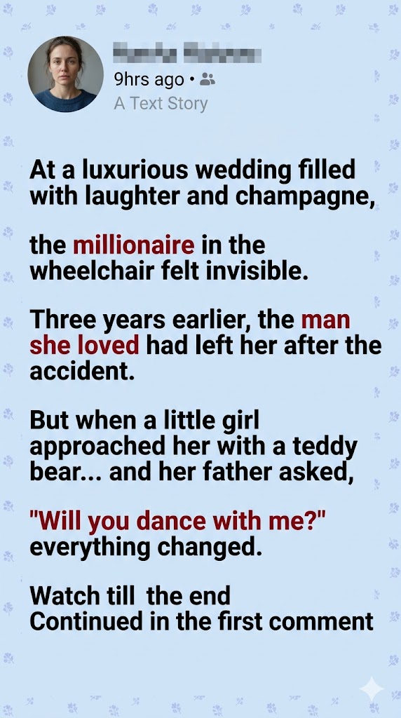 The question hung in the air. For a second the world around them faded—the music, the laughter, the clinking glasses. “How?” Isabela asked quietly. Diego extended his hand. “Like this.” He took hold of the handles of her wheelchair and gently rolled her toward the dance floor. Sofía clapped excitedly. “See! Dancing!” At first people stared. The elegant guests paused mid-conversation, curious. Diego positioned himself beside her and began to move slowly with the rhythm of the music, guiding the chair as if it were part of the choreography. Not pushing, not controlling—just following the melody. Isabela felt something she hadn’t felt in years: the music again. Not as a memory of what she had lost, but as something still alive. The ballroom blurred into warm light as Diego spun the chair gently and Sofía twirled beside them. Laughter bubbled out of Isabela before she realized it. Real laughter. The kind she thought she had forgotten.