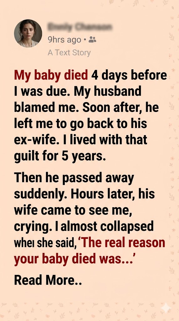 I stared at her—his wife—my hands trembling, my heart pounding so hard it hurt. For five years, I had carried the weight of those words: It was your fault. I had replayed that night over and over, searching for something I did wrong… something I could have changed.