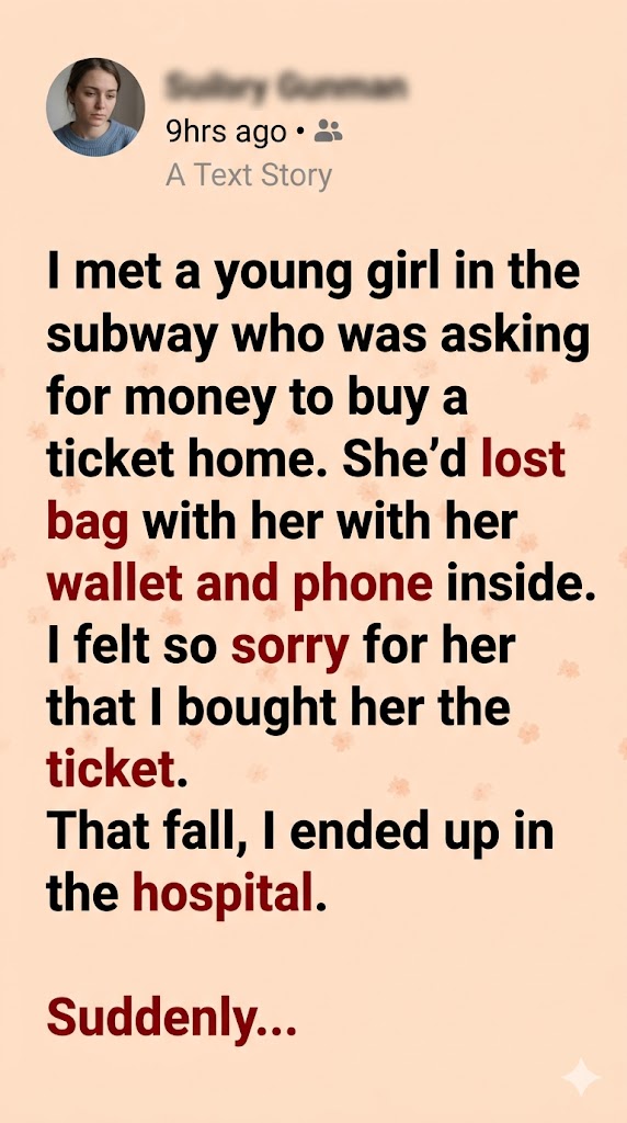 One day in the subway, I met a young girl asking for money to get home. She had lost her bag — no wallet, no phone, nothing. She looked genuinely distressed, and I couldn’t just walk away. Instead of giving cash, I bought her a ticket.