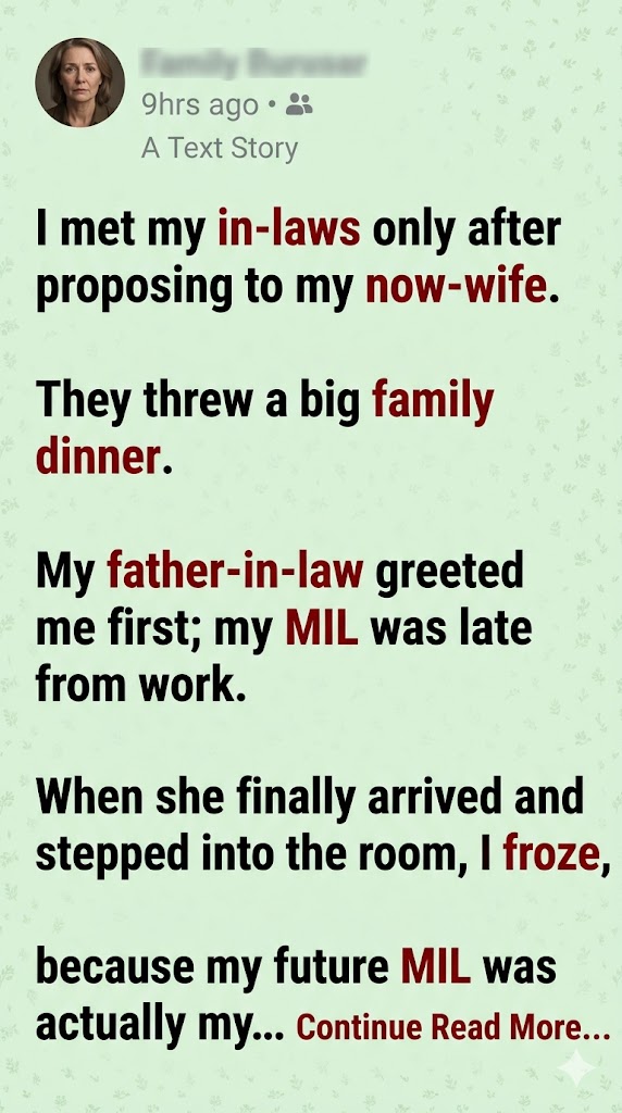 I met my in-laws for the first time right after I proposed to my now-wife. It was supposed to be a warm, celebratory family dinner—a chance to officially join the circle of the people who raised the woman I loved. Her dad greeted me at the door with one of those firm handshakes meant to test your backbone, but he was kind, welcoming in his own gruff way. My fiancée kept squeezing my hand, whispering that her stepmom was running late from work but would arrive any minute.