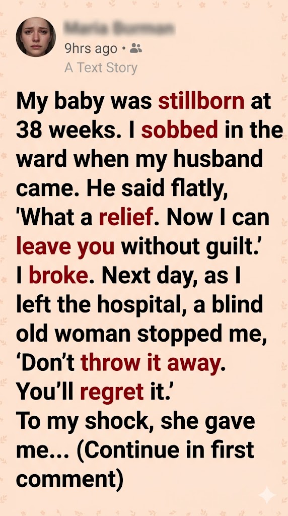 My baby was stillborn at 38 weeks—a boy. They took him away immediately and never let me hold him. I was shattered. Then my husband walked in and said coldly, “What a relief. Now I can leave you without guilt.” In that moment, everything broke inside me.
